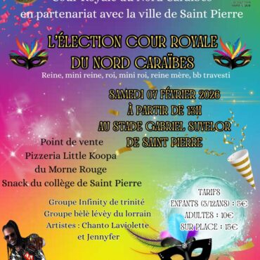 Cour Royale du Nord Caraïbes et la Ville de Saint-Pierre vous invitent à l'élection de la reine, mini 2reine, roi, reine mère et bb travesti samedi 7 février !