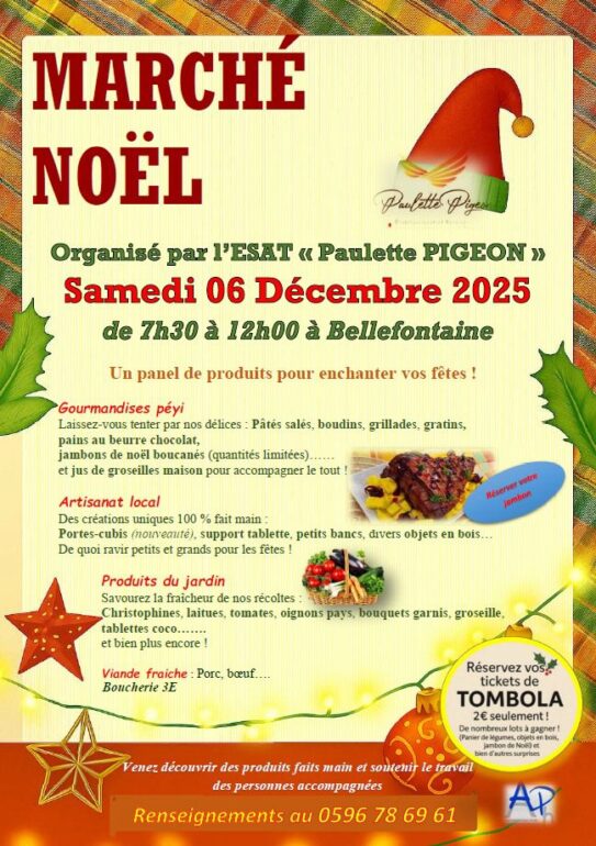 L’Esat Paulette Pigeon de Bellefontaine vous invite au Marché de Noël le samedi 6 décembre de 7h30 à midi… Un panel de produits pour enchanter vos fêtes !