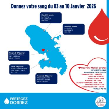 Planning Collecte de Sang de l' EFS Martinique Semaine 2 du Lundi 5 au Samedi 10 Janvier 2026