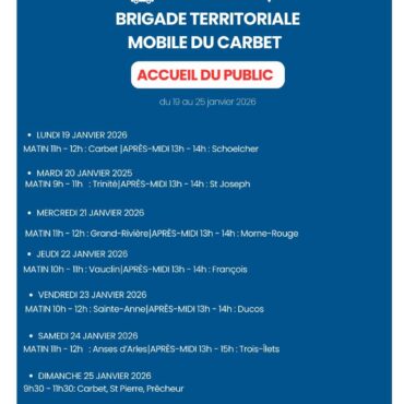 Planning Brigade Territoriale Mobile du Carbet Accueil du Public : Semaine 4 du lundi 19 janvier au dimanche 24 janvier 2026