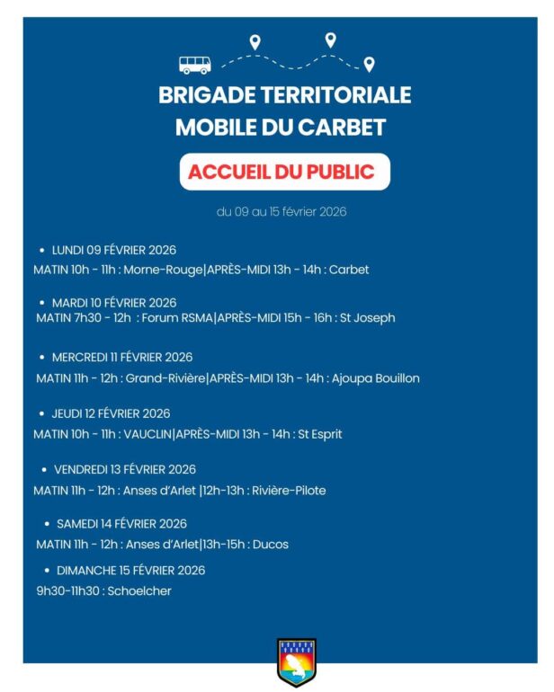 Planning Brigade Territoriale Mobile du Carbet Accueil du Public : Semaine 7 du lundi 9 février au dimanche 15 février 2026