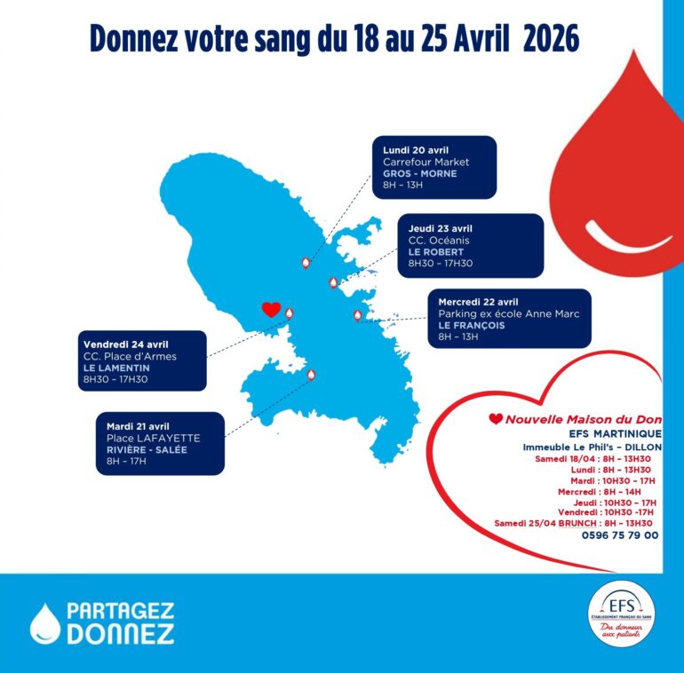 Planning Collecte de Sang de l’ EFS Martinique Semaine 17 Lundi 20 Samedi 25 Avril 2026