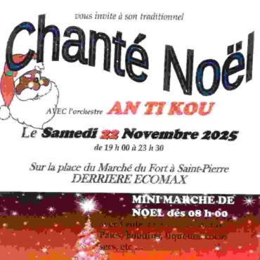 L'association Club Kacao vous invite à son Chanté Nöel traditionnel le samedi 22 novembre à partir de 19h à Saint-Pierre, ainsi que son mini marché et vente de repas chaud...