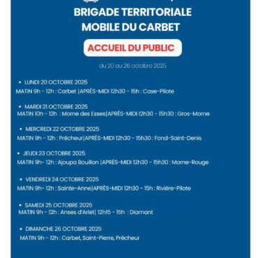 Planning Brigade Territoriale Mobile du Carbet Accueil du Public : Semaine 43 du 20 au 26 octobre 2025