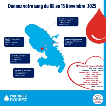 Planning Collecte de Sang de l' EFS Martinique Semaine 46 du Lundi 10 au Samedi 15 Novembre 2025