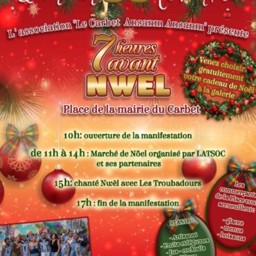 L'Association Carbet Ansanm Ansanm vous invite à la manifestation 7 heures avant Nwel le dimanche 30 novembre 2025 à partir de 10h Place Jules Grévy...