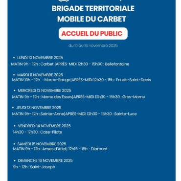 Planning Brigade Territoriale Mobile du Carbet Accueil du Public : Semaine 46 du 10 au 16 novembre 2025