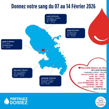 Planning Collecte de Sang de l' EFS Martinique Semaine 7 du Samedi 2 au Samedi 14 Février 2026
