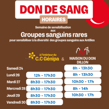 Planning Collecte de Sang de l' EFS Martinique Semaine3 du Lundi 19 au Samedi 24 Janvier 2026