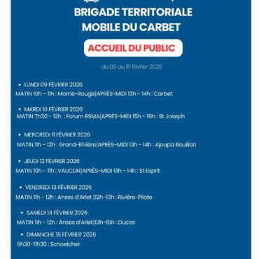 Planning Brigade Territoriale Mobile du Carbet Accueil du Public : Semaine 7 du lundi 9 février au dimanche 15 février 2026