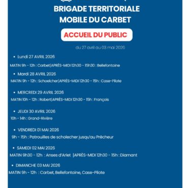 Planning Brigade Territoriale Mobile du Carbet Accueil du Public : Semaine 16 du Lundi 27 Avril au Dimanche 3 Mai 2026
