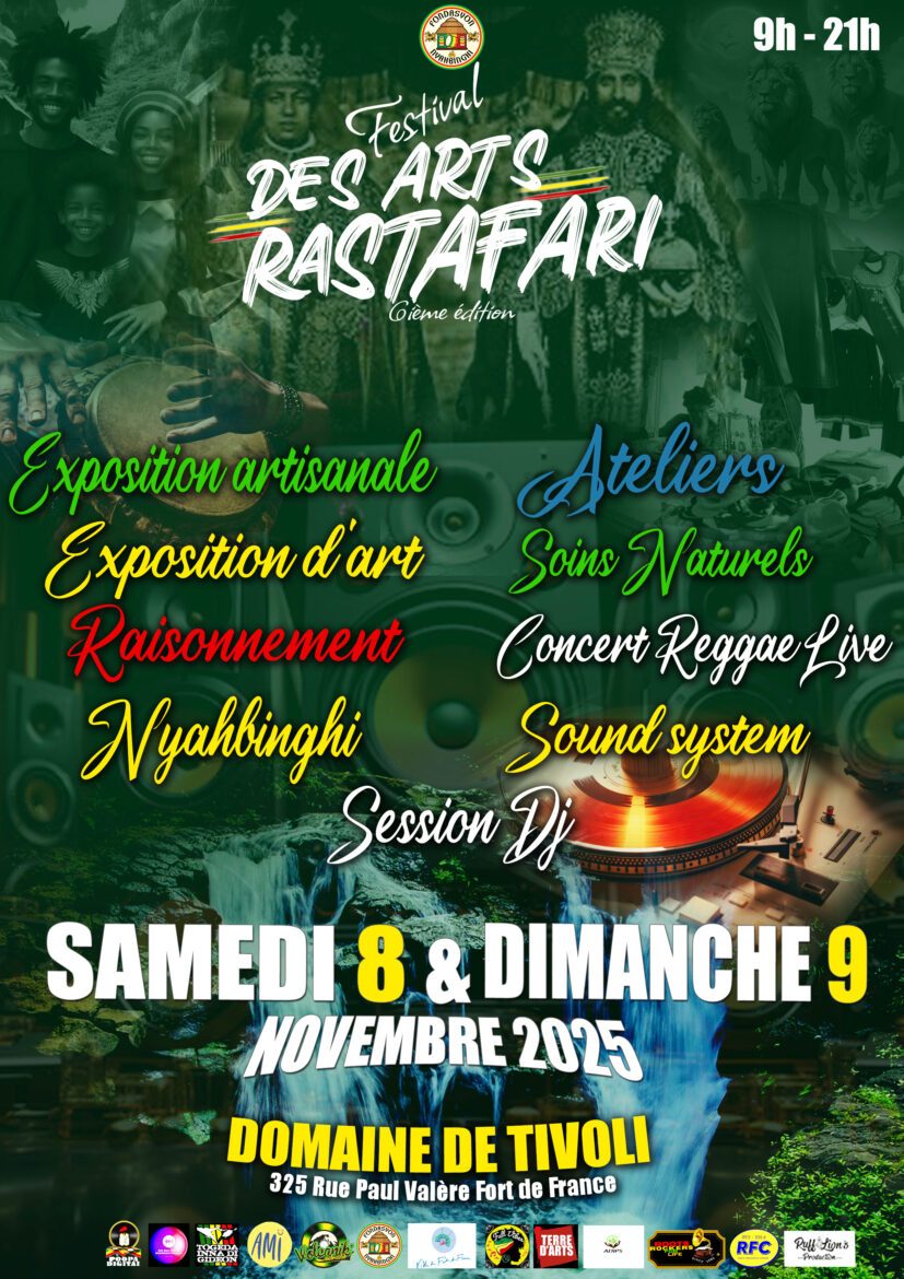 Fondasyon Nyahbinghi présente la 6ème édition du Festival des Arts Rastafari le samedi 8 et dimanche 9 novembre, avec expo, concert, culture, sound system, ateliers et ital...