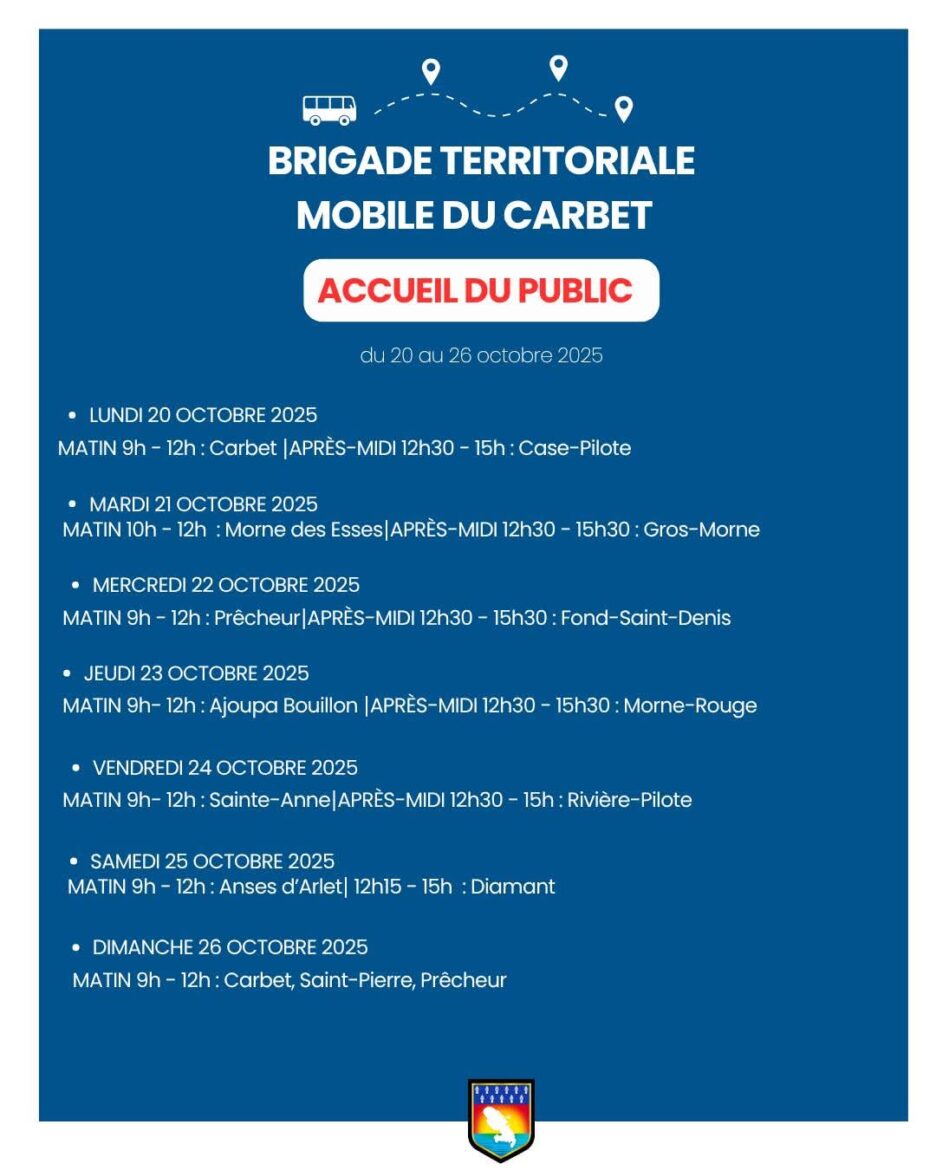 Planning Brigade Territoriale Mobile du Carbet Accueil du Public : Semaine 43 du 20 au 26 octobre 2025