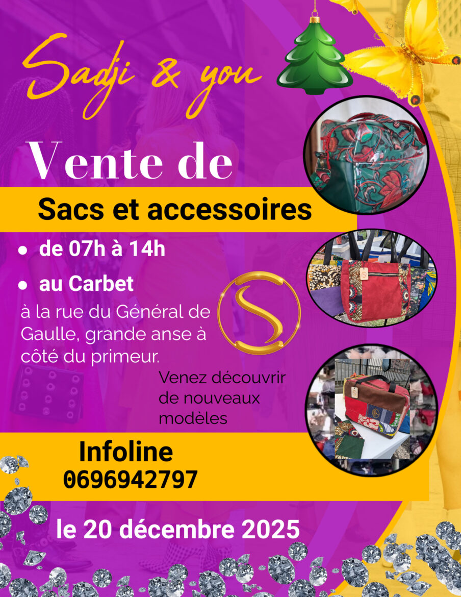 Sadji & You vous donnent rendez-vous pour une vente de sacs et accessoires le samedi 20 décembre à partir de 7H00 au quartier Coin !!!