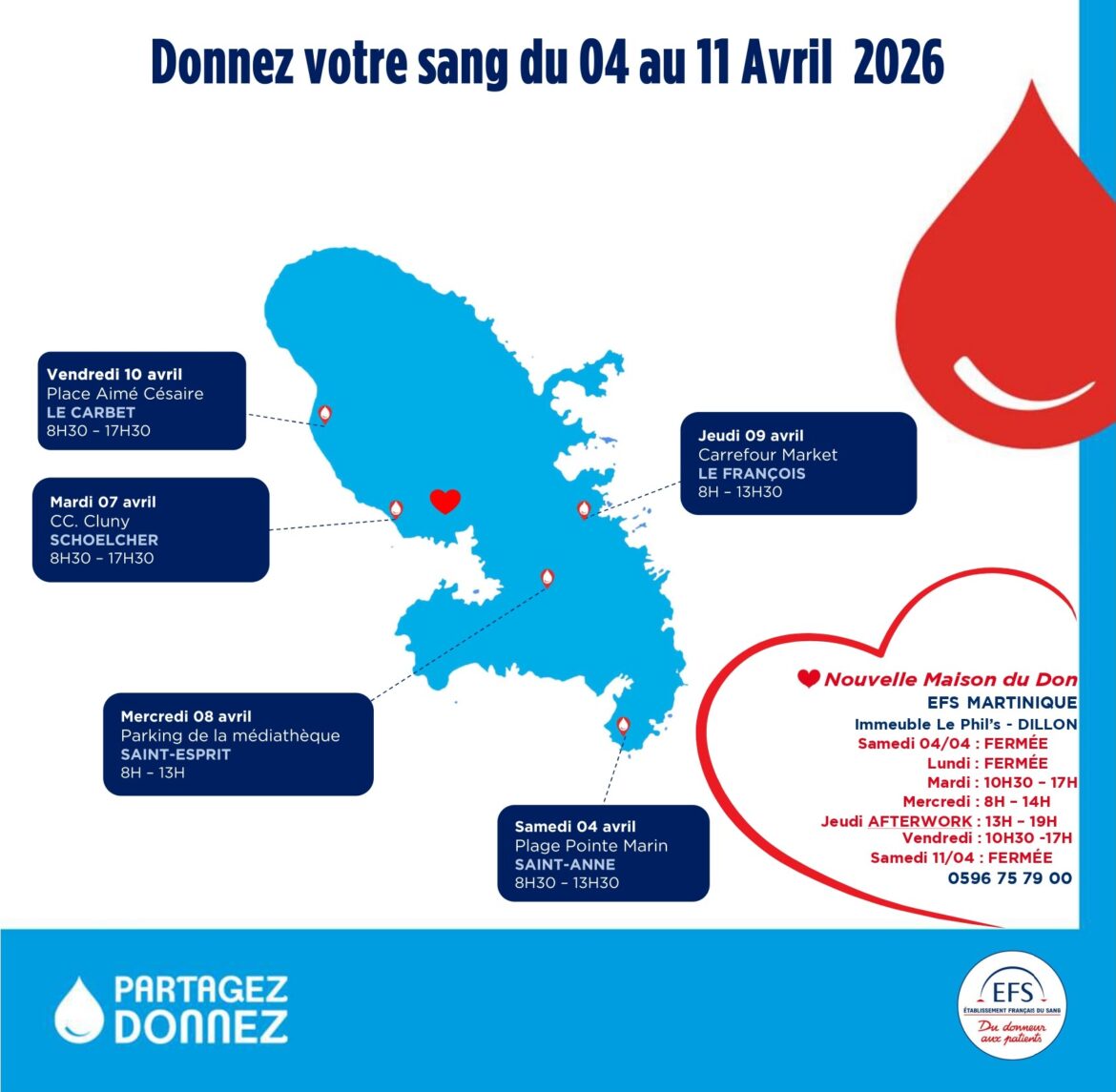 Planning Collecte de Sang de l' EFS Martinique Semaine 16 Lundi 13 Vendredi 17 Avril 2026